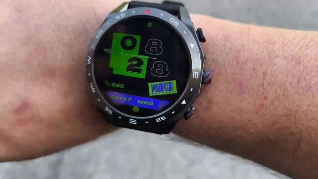Inte direkt kompakta mått. Vi pratar om ett 50 mm hölje och en tjocklek på 14 mm, så den är inte direkt lämplig för, säg, kvinnors handleder. Smartklockan PAEAROFERO T95 har en 1,52-tums IPS-skärm. Det finns en sorts väldigt svag always-on-skärm. Vi pratar om 360 x 360 pixlar i upplösning, så "retina" med en uppdateringsfrekvens på 60 Hz, åtminstone enligt märket. Animationerna är faktiskt ganska flytande, men jag skulle inte räkna med den upplösning som märket deklarerar eftersom innehållet på skärmen ser lite "pixelartat" ut, men den gör sitt jobb och är läsbar i direkt solljus. Vi pratar om en väldigt, väldigt enkel smartklocka och jag måste säga att jag har använt den i ungefär en vecka och dess, så att säga, akilleshäl är batteriet. Faktum är att från 100 % laddning klockan 8:00 på morgonen hade jag redan tappat 20 % vid lunchtid. Så batteritiden ligger på cirka 2 dagar, maximalt 3 om du använder den väldigt lite, men kom igen, allt som allt är det okej för priset och det speciella med att ha integrerade TWS-hörlurar som fortfarande tar energi från klockan.