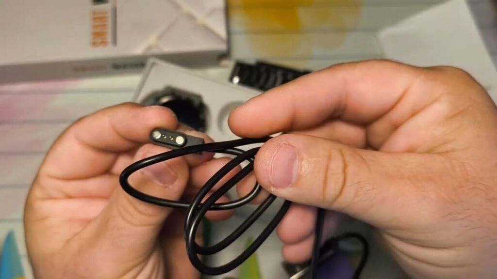 Låt oss börja med uppackningsupplevelsen, ett måste för alla recensioner med självrespekt. Försäljningspaketet är ganska enkelt, med bara ordet SMARTWATCH skrivet på framsidan och några små specifikationer, inklusive närvaron av ett 400 mAh-batteri och det faktum att den här klockan har modellnumret T95. Innehållet är dock inte enkelt, med en flerspråkig användarmanual (inklusive italienska) som inkluderar QR-koden för att ladda ner appen från Google Play Store eller App Store. Och vi känner till appen eftersom det är Fitcloud Pro. Sedan hittar vi ett sportigt armband, även om vi skulle kunna säga att det redan är smutsigt, vilket tyder på att kvaliteten på det här armbandet inte är den bästa, men vi har också ett andra armband som är lite mer raffinerat. Ett metallarmband med den klassiska öppningen för klockor, lite mer klassiskt faktiskt. Slutligen hittar vi laddaren som har de klassiska magnetiska pogo-stiften för dessa klockor av kinesiskt ursprung och en påse som innehåller två silikongummi-spetsar, reservkåpor för TWS-hörlurarna integrerade i klockans hölje.